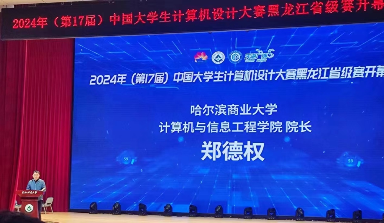 近日,由黑龙江省普通高等学校创新创业教育指导委员会、中国大学生计算机设计大赛黑龙江省级赛组织委员会主办,东北林业大学承办的2024年(第17届)中国大学生计算机设计大赛黑龙江省级赛举办了现场赛。东北林业大学副校长李明泽、省内各高校计算机相关学院院长及参赛师生代表等千余人参加开幕式。我校计算机与信息工程学院院长郑德权代表省赛组委会在开幕式上致辞。