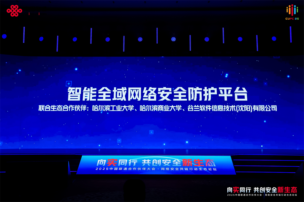 此次会上,中国网络安全产业创新发展联盟(CSIA)发布“2025年度网络安全十大创新成果”,哈尔滨商业大学作为合作单位与中国联合网络通信集团有限公司、哈尔滨工业大学和谷兰软件信息技术(沈阳)有限公司联合打造的智能全域网络安全防护平台凭借其技术创新性、服务模式先进性及生态合作示范性成功入选。该平台实现了全域感知、智能决策、协同联防能力的全面升级,通过技术沉淀与迭代,赋予各行业从重大保障到常态化服务能力的转型升级,为各行业提供了更可靠、可信、智能的安全防护解决方案。