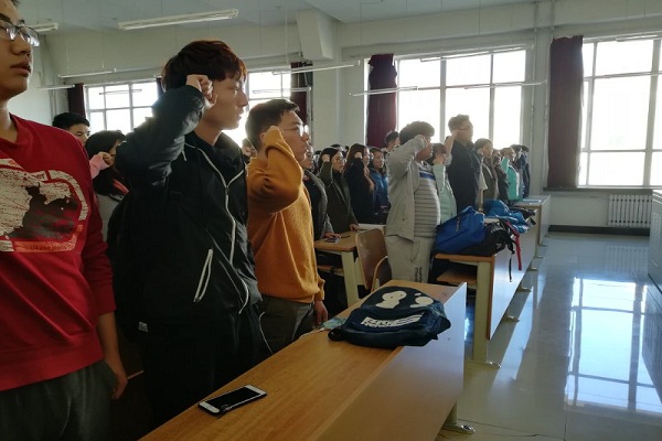 我院学生党支部开展了重温入党誓词活动,全体党员面对鲜红的党旗庄严宣誓,再次接受党性熏陶,学习习近平总书记在瞻仰中共一大会址时的重要讲话精神,“铭记党的奋斗历程时刻不忘初心,担当党的崇高使命矢志永远奋斗”,发挥青年党员的先锋作用。