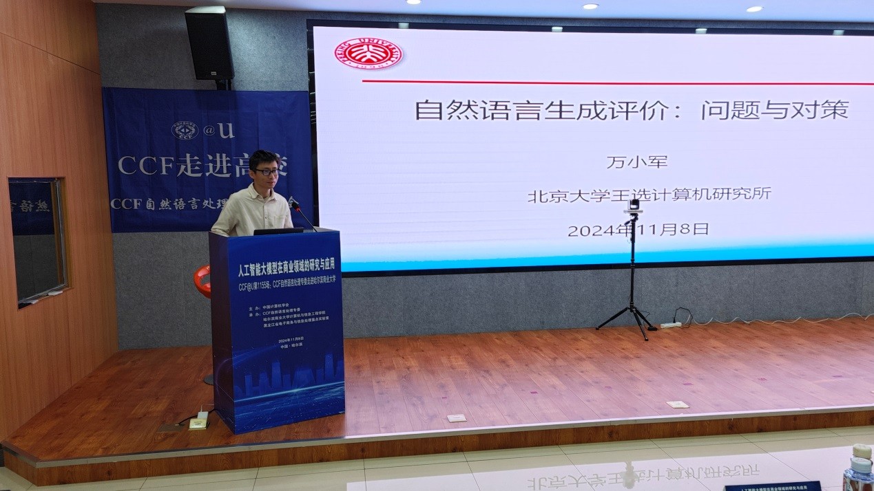 CCF自然语言处理专委会副主任、北京大学万小军教授做了题为《自然语言生成评价:问题与挑战》的精彩报告,报告剖析了自动评价和人工评价两类评价方法面临的若干问题和挑战,同时介绍大模型在文本质量评价方面的潜力和可行性,还介绍其团队针对NLG评价所取得的部分研究进展。