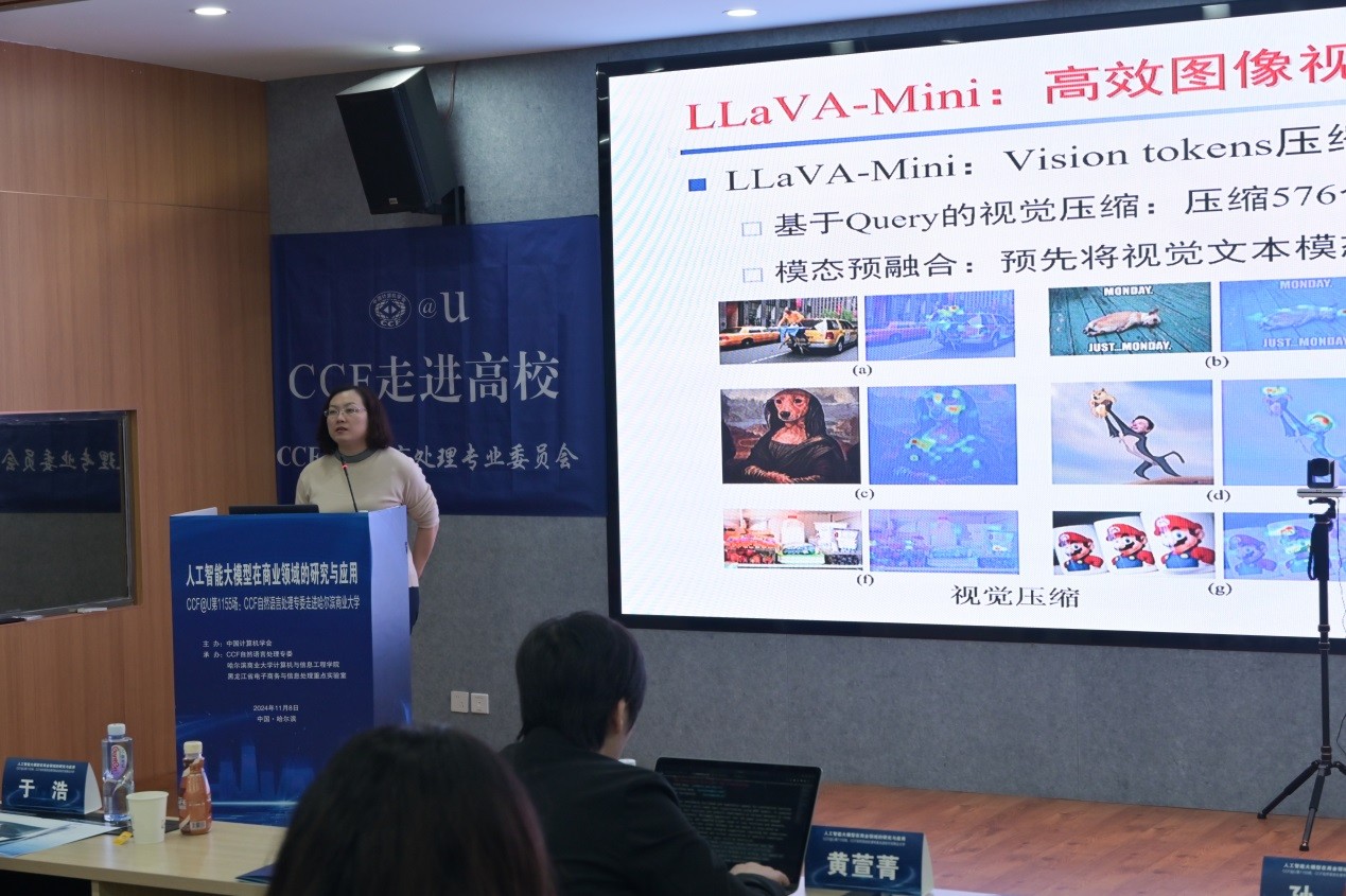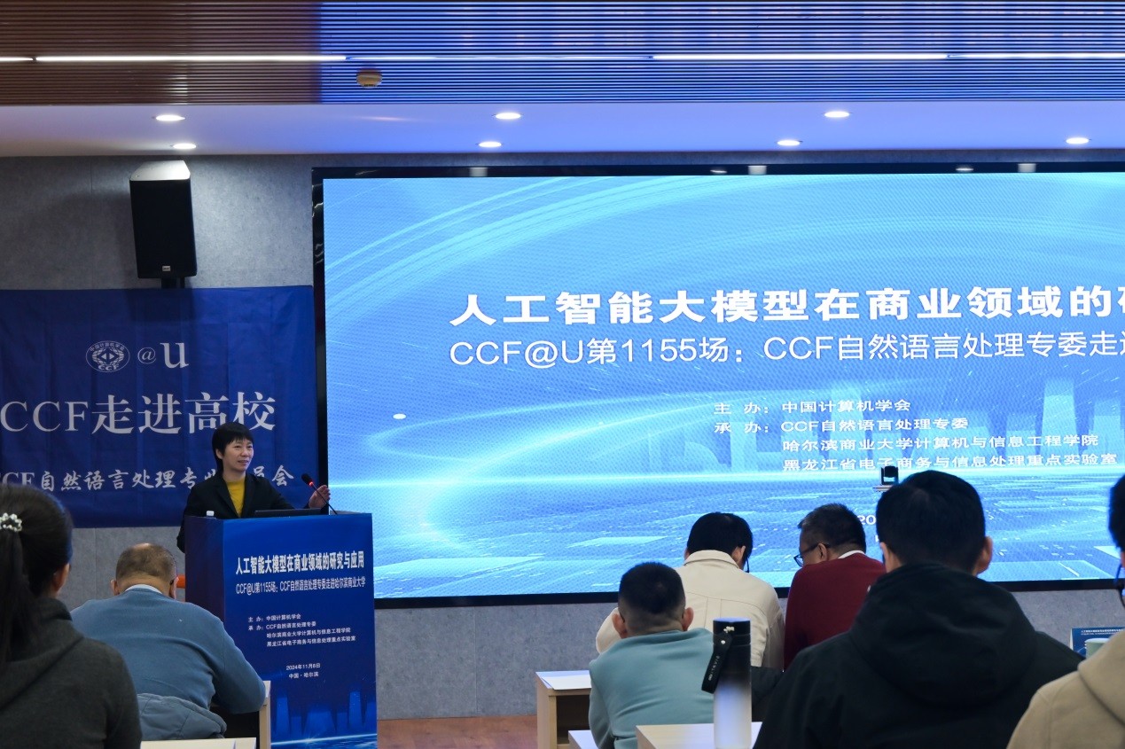 11月8日,由中国计算机学会(CCF)主办,CCF自然语言处理专委会、哈尔滨商业大学计算机与信息工程学院、黑龙江省电子商务与信息处理重点实验室承办的CCF走进高校活动在我校举行。会议就“人工智能大模型在商业领域的研究与应用”进行讨论。我校副校长李景义教授代表学校致辞,中国计算机学会自然语言处理专委会主任、复旦大学黄萱菁教授代表学会致辞,计算机与信息工程学院院长郑德权教授主持活动,学院教师及研究生百余人参会。