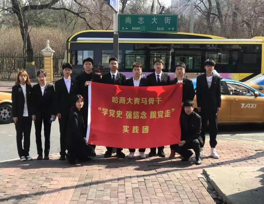计算机学院青马骨干实践团分别在李兆麟将军纪念碑下、尚志大街合影,同学们心怀感恩,表达对英雄的崇高敬意。