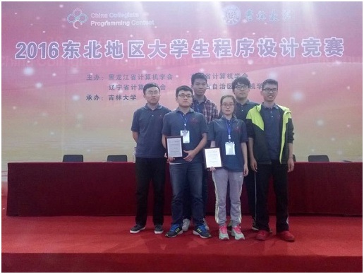 2016年东北地区大学生程序设计竞赛和第二届中国大学生程序设计竞赛分别于9月25日和9月27日在吉林大学举行。 哈尔滨商业大学计算机与信息工程学院派出的2支由大二和大三学生组成代表队在校、院各级领导的关怀和支持下,克服了优秀选手毕业、老选手退役等种种困难,经过赛前的刻苦集训,终于在高水平的赛事中取得了可喜成绩!在东北地区赛上荣获二等奖和三等奖各一项,在全国赛上荣获铜奖和优胜奖各一项。