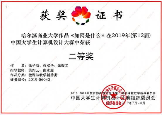 二等奖《知网是什么》获奖证书,指导教师:关绍云、曲永鑫