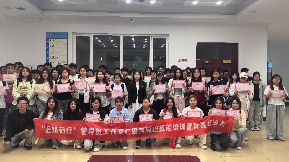 早在全国大学生计算机应用能力与数字素养大赛备赛初期,在学院各领导的支持下计算机与信息工程学院“E路前行辅导员工作室”积极开展C语言编程技能培训暨竞赛动员会。由金一宁教授、王琨老师为学生指明竞赛方向,结合历年赛题,激励学子以比赛为契机、突破自我、勇攀高峰。动员会不仅为备赛工作奠定了坚实基础,更凝聚起师生协同奋进的强大合力。