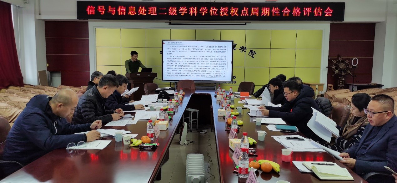 评估组组长赵春晖教授主持评估会。计算机与信息工程学院于金涛教授对哈尔滨商业大学信号与信息处理学科硕士授权点自我评估情况进行了汇报。专家组审查了自评估指标标准、自评估自评报告、自评估简况表和相关佐证材料,经质询和讨论,专家一致认为:该硕士学位授权点在人才培养目标上定位准确,培养方案能够支撑人才培养目标;师资队伍及职称结构比较合理,教学科研成果达到学位点评估要求,教学科研支撑条件满足硕士研究生培养需求,具有较为完善的培养管理制度和保障措施;学术道德规范,奖助体系完善。专家组一致同意哈尔滨商业大学信号与信息处理硕士学位授权点通过合格评估。建议继续凝练学科方向,突出学科特色,加强人才引进;加强招生宣传,规范研究生培养过程管理,提高人才培养质量;进一步提高课题层次和数量,增强服务地方经济能力。